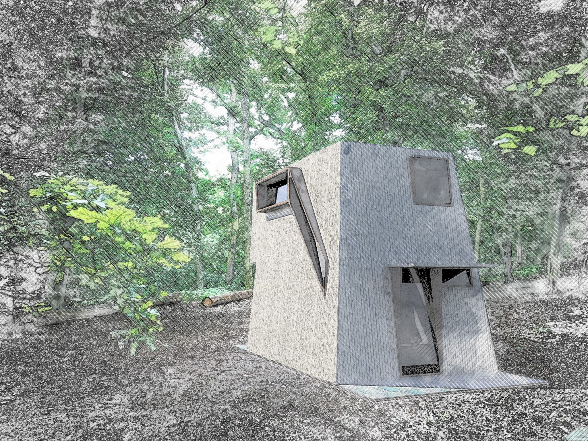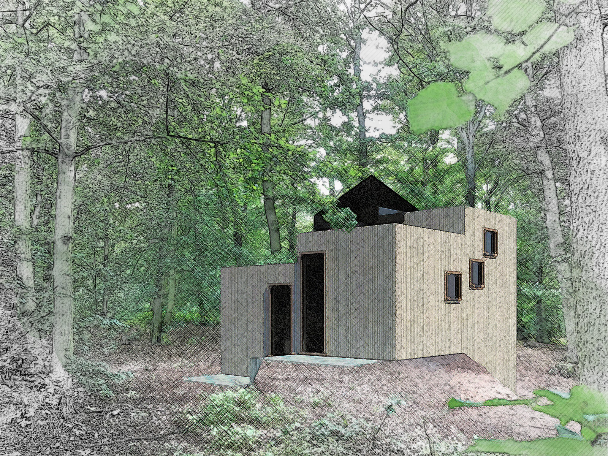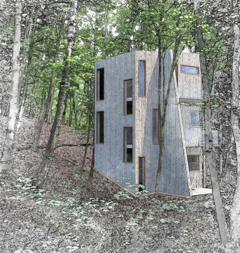 V návrhu a studiích architekta, grafika a designéra je nyní 12 TINY HOUSES (drobných, malých domů), které mohou být umístěny variantně na rovině, na louce, v lese ..., na mýtině – dle typu parcely, nebo i ve svahovité parcele – dle terénu a polohy ...