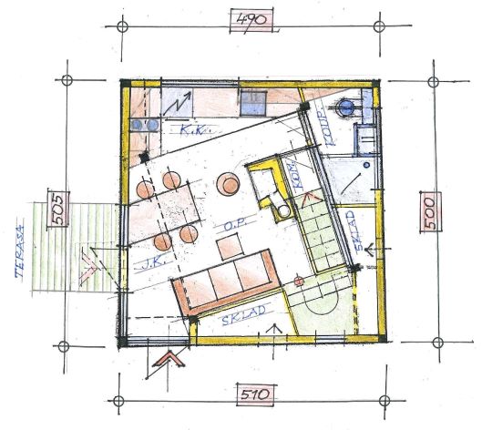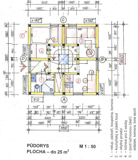 Jedná se o dvoupodlažní objekt na rovný terén i na mírný svah, zast. plocha 20 m2.