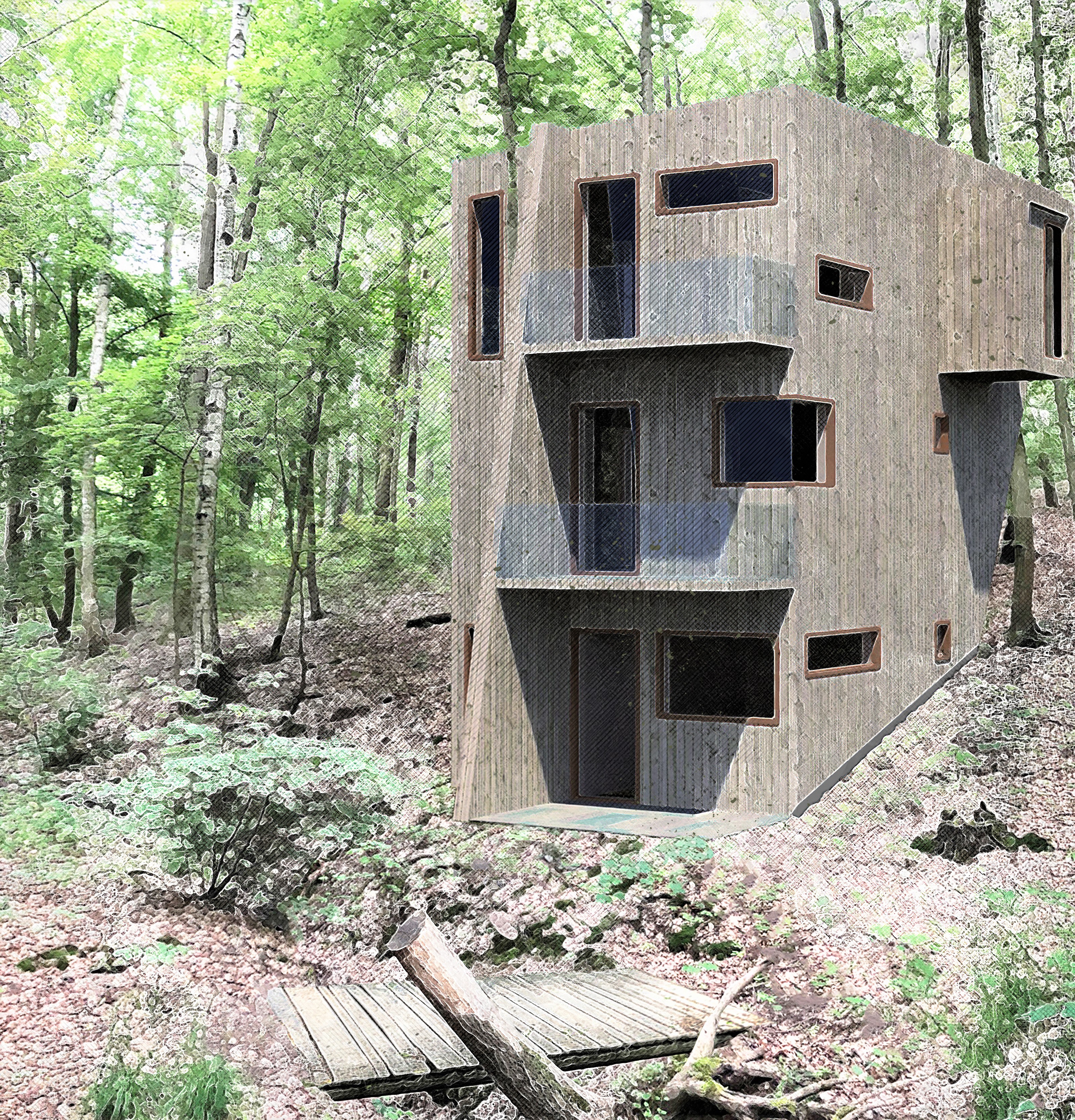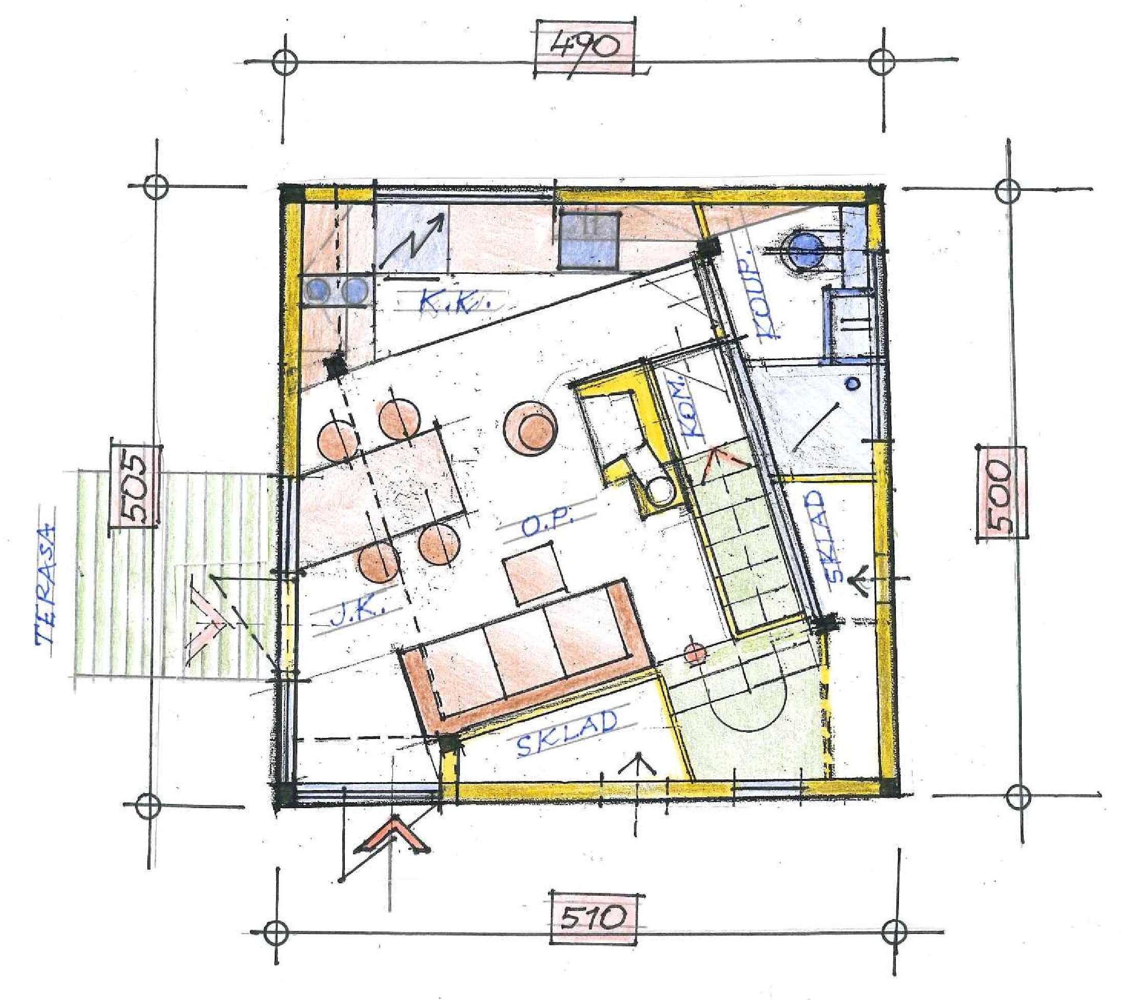 Grafik vše s konzultacemi netradičního pojetí se podíleli architekt, designér, grafik, a s konzultacemi s tesařskou stavební firmou.